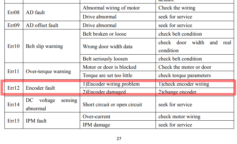 1. 현장명 : 송포 청소년문화의집 2. 12/9 (금) 오후 2시 검사 예정 3. Error Code 12 : Encoder Fault 4. 도어모터 1EA 서울사무소로 택배 발송 요청